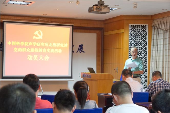 會(huì)上站黨委書記張勝堅(jiān)作動(dòng)員講話并宣講了《中國科學(xué)院聲學(xué)研究所北海研究站深入開展黨的群眾路線教育實(shí)踐活動(dòng)實(shí)施方案》。他對(duì)北海站開展黨的群眾路線教育實(shí)踐活動(dòng)的指導(dǎo)思想、目標(biāo)任務(wù)、方法步驟及活動(dòng)要求等進(jìn)行了部署。指出北海站全體黨員干部要按照中央和聲學(xué)所的部署要求,高度重視,統(tǒng)一思想,以為民務(wù)實(shí)清廉為主要內(nèi)容,聚焦作風(fēng)建設(shè),堅(jiān)決反對(duì)形式主義、官僚主義、享樂主義和奢靡之風(fēng)。緊密結(jié)合北海站工作實(shí)際,著力抓好“學(xué)習(xí)教育、聽取意見”,“查擺問題、開展批評(píng)”,“整改落實(shí)、建章立制”三個(gè)重要環(huán)節(jié),把握聲學(xué)所青島基地的建設(shè)機(jī)遇,推動(dòng)科技創(chuàng)新和重大成果產(chǎn)出。